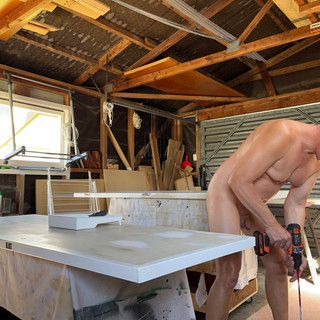 Painting doors in the shed on a very hot Hawkes Bay day, needs to be done sometime before I go back to work.